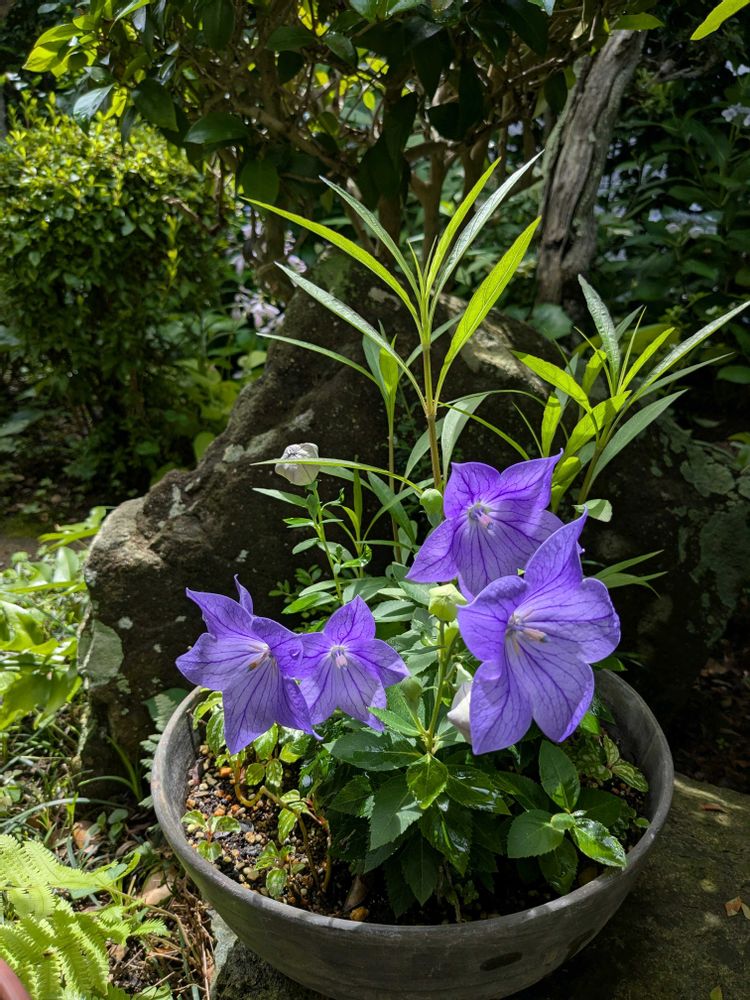 庭ではキキョウが咲いているわ〜涼しい爽やかな気分に!!✌️🥰🎶🎶🎶