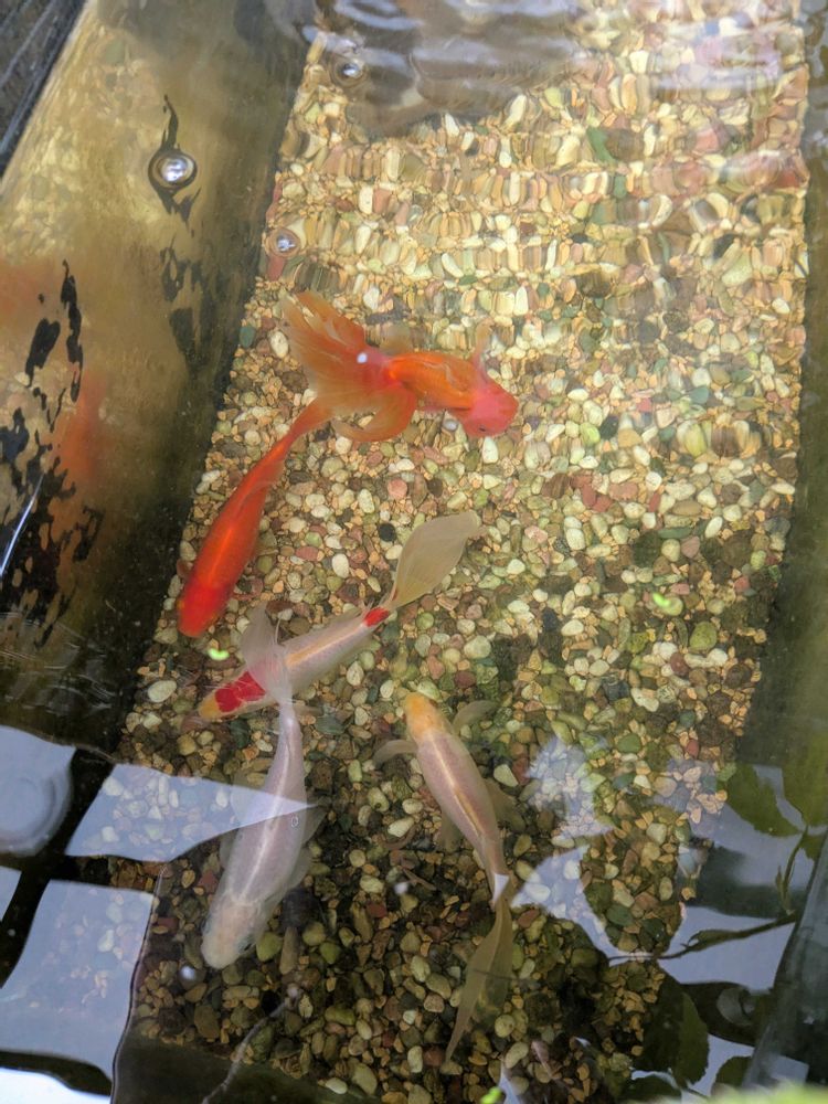 去年ミックス金魚の子供5匹をお迎えしたら…大きく成長し大の仲良しになり🎶🎶🎶