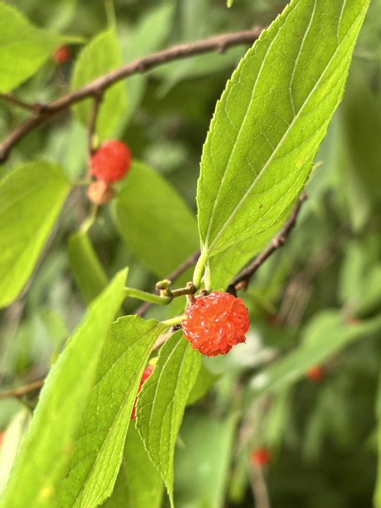 ①②③可愛らしいオレンジ色の実をみつけました。ヒメコウゾのようです。美味しそう😋調べると、味はよいがトゲトゲした食感で舌触りが悪いとか。