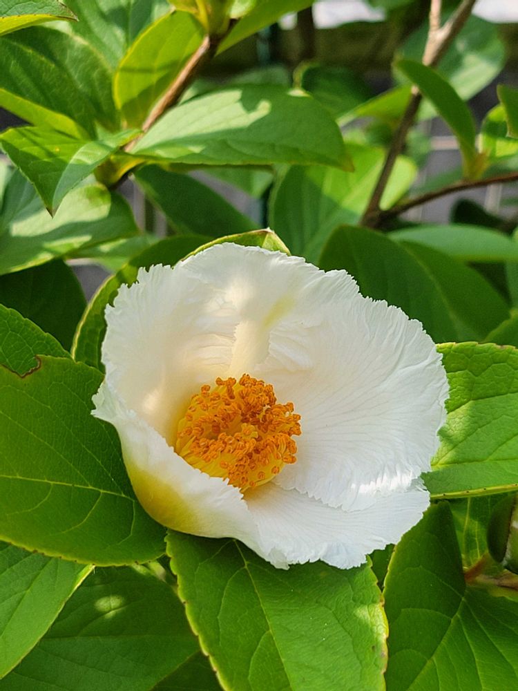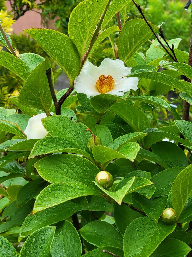 庭のナツツバキ(別名シャラ)が爽やかに咲き始めました。