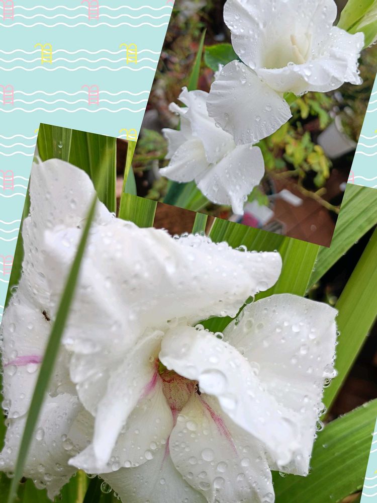 ジメジメ気分を吹き飛ばすかのように、白いグラジオラスが咲きました(^-^)