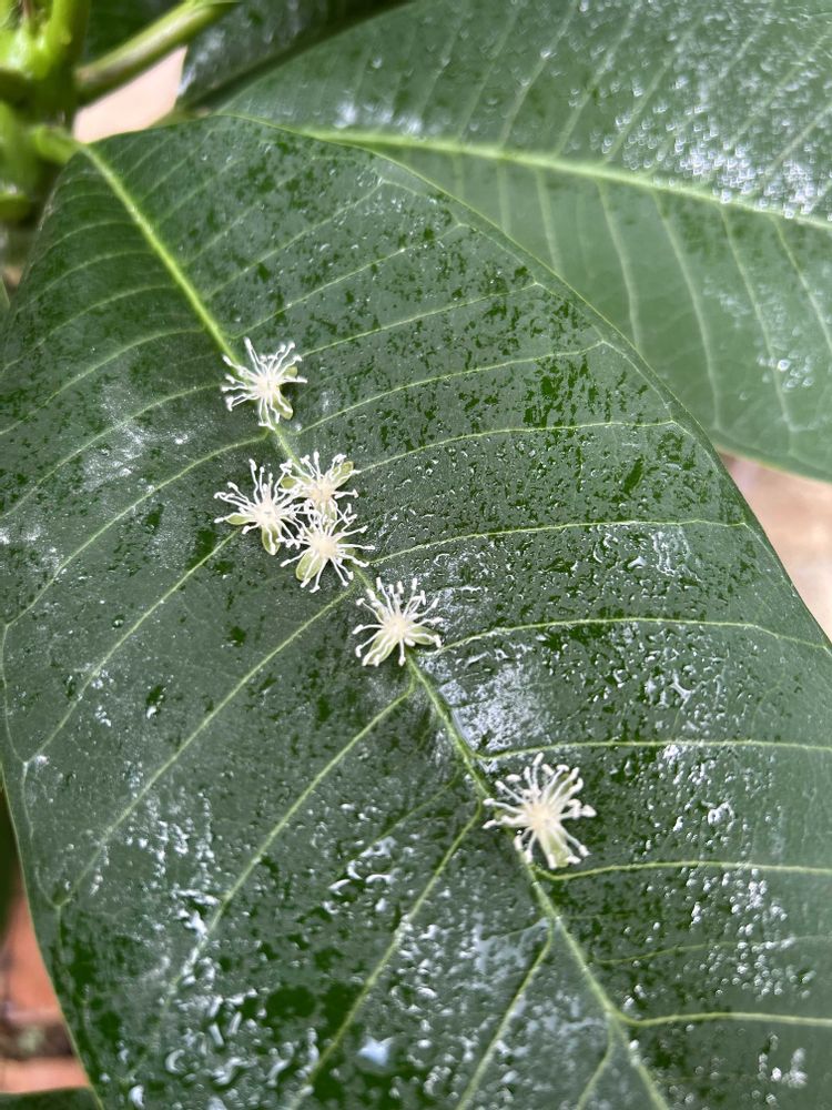 ヤシの木についた粒々🟢🟢🟢🟢🟢種ではなくて蕾だったようで花が咲いてます✻*˸ꕤ*˸*⋆。✻*˸ꕤ*˸*⋆。✻*˸ꕤ*˸*⋆。とても可愛いお花です𖤣𖥧𖥣。𖥧𖧧💚