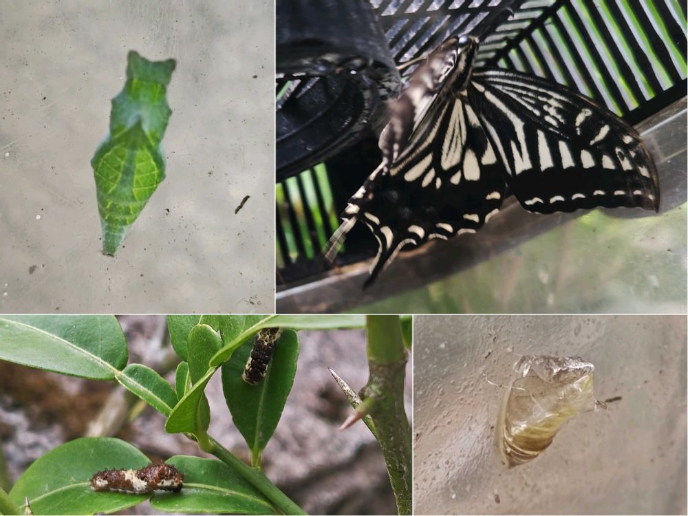 ⑤は柚子の葉っぱで生まれたアゲハチョウの幼虫を飼っていたら、立派なアゲハチョウになり、巣立って行きました🦋