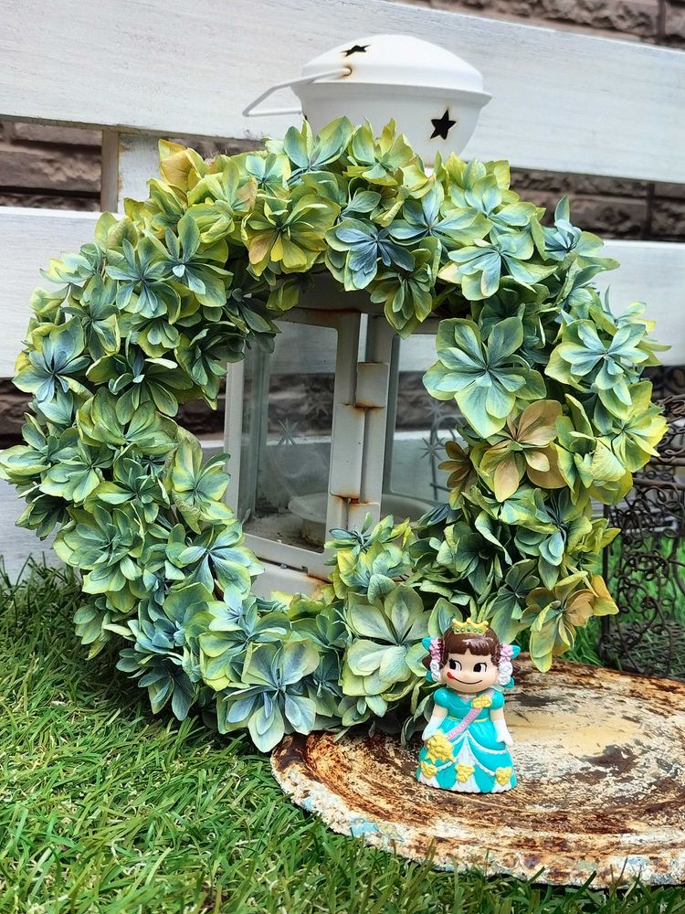 昨日投稿の紫陽花ドライをカットしてリース台に刺してリースを作りました💕