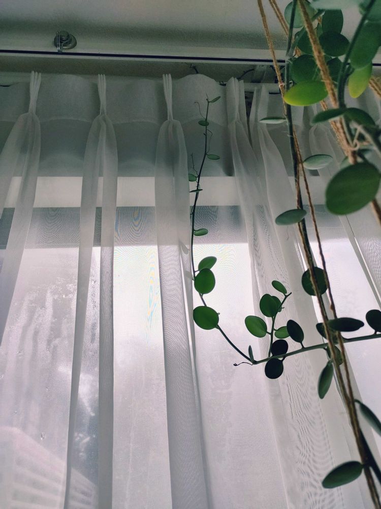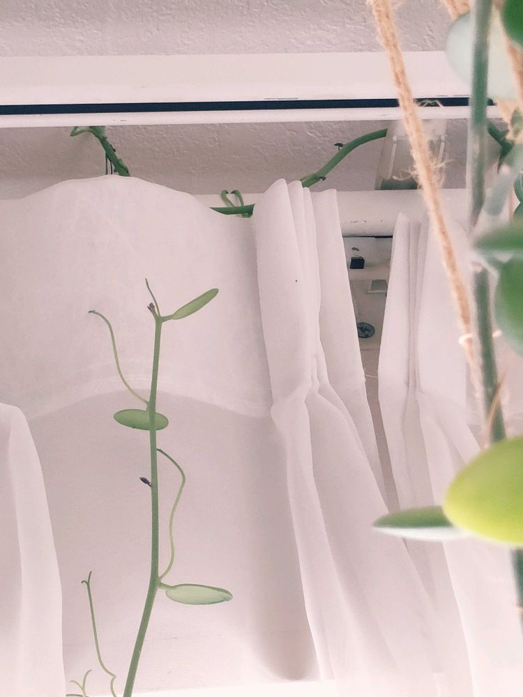 カーテンレールを這い出し、ツルが巻き付いてしまったので移動もできず😂