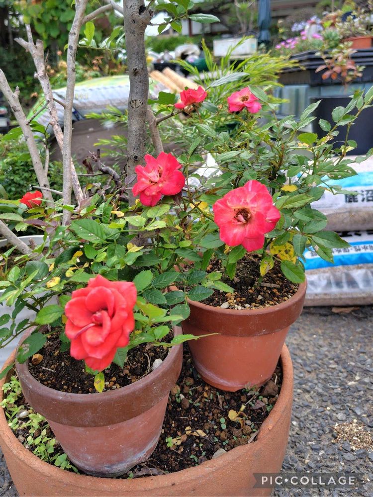 ②③鉢植えのバラも2回目の開花