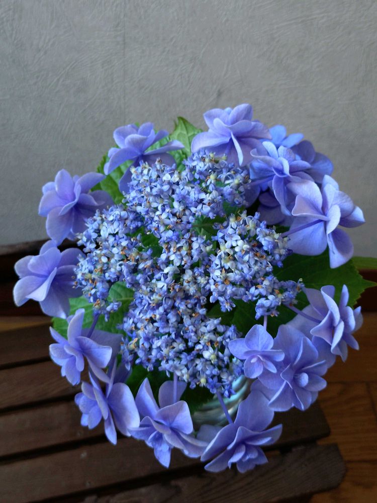昨日私が買った紫陽花、水揚げが悪くしなしなでした