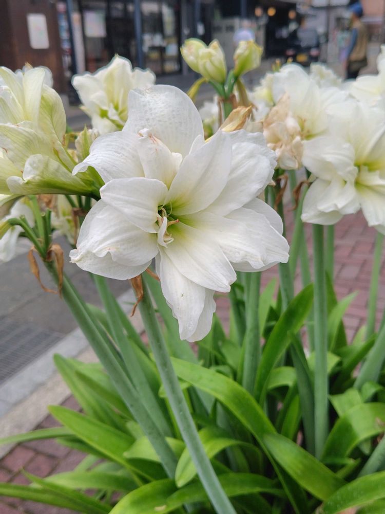 ⑤今日のお花 真っ白な八重咲きのアマリリス🤍🤍…先月旅行先で見ました、美しいですね🍀