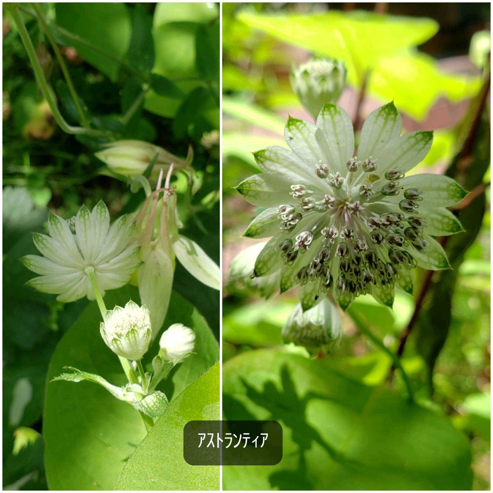 気候変動にもしなやかにそして強かに、アストランティアとコバンコナスビが数年振りに花を付けてくれて嬉しい!!