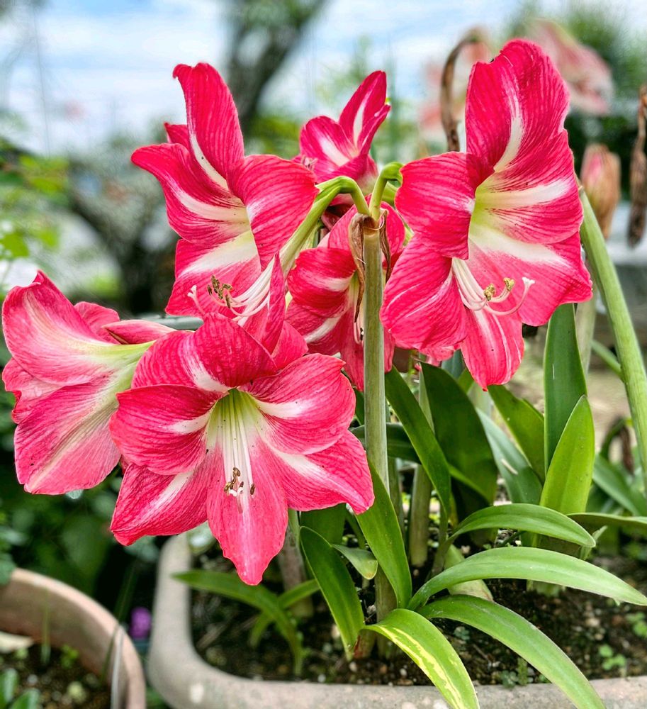 植物園温室の個性的なアマリリス三種