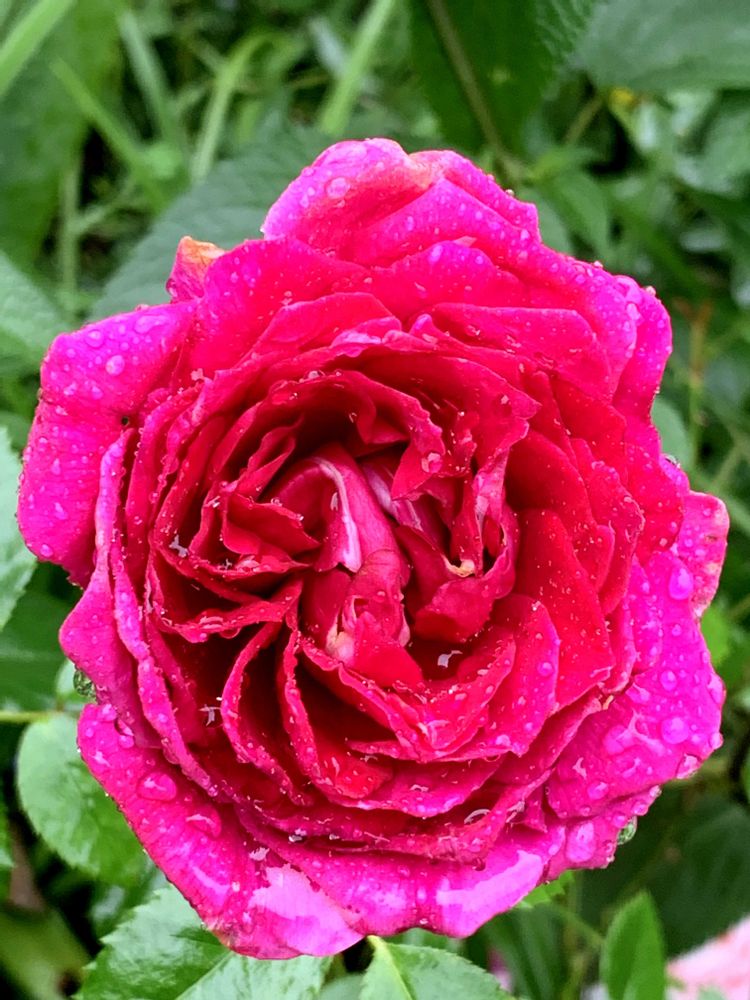 激しい雨で花弁が散りそう