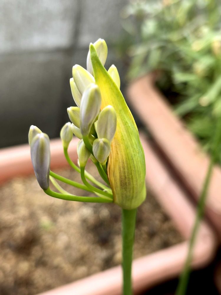 ⑤一昨年お迎えしてたアガパンサス💜も去年は葉っぱ🌿だけで咲きませんでしたが、今年は4つもツボミが付いています。