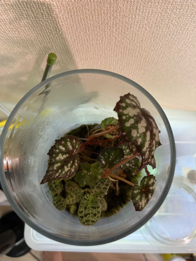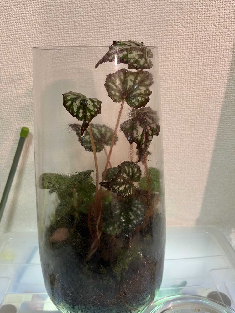 ジトジトな日が続く中、苔リウムの中のベゴニアが凄いことに😂