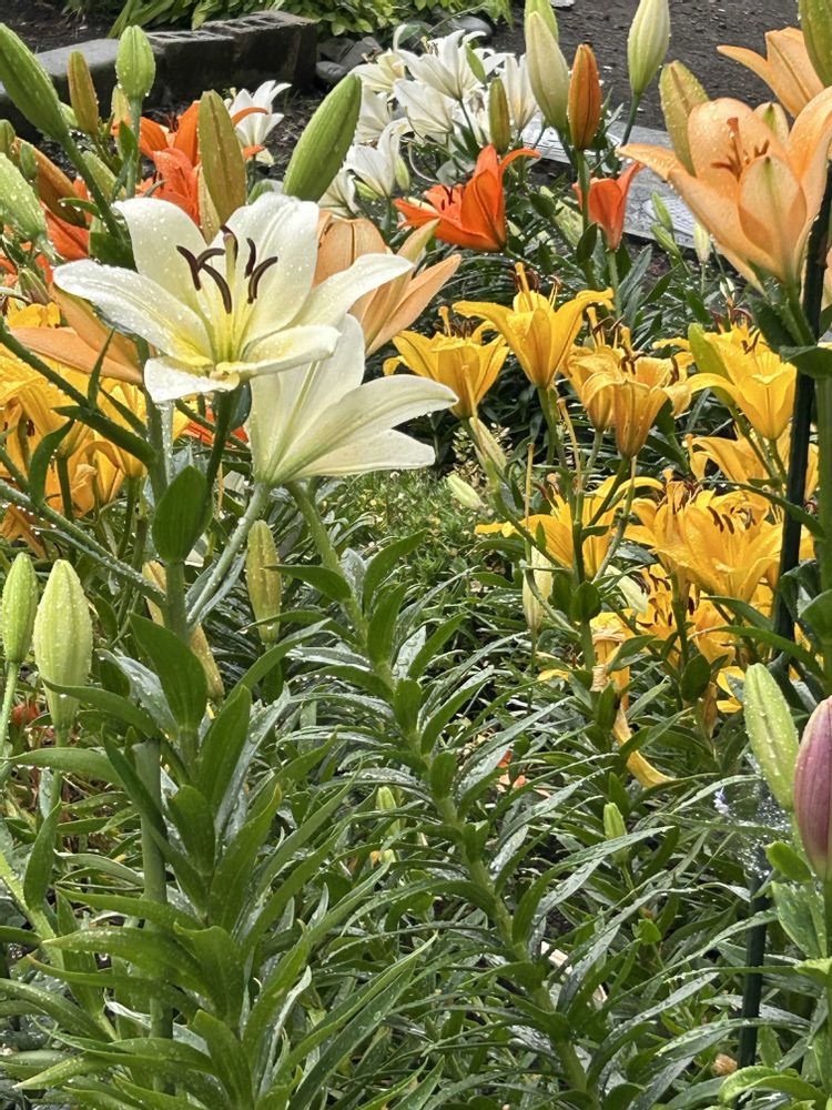 ユリの花々に