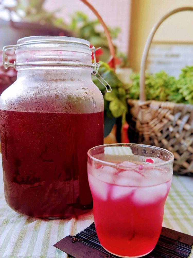 赤紫蘇ジュースを作りました。子供たちが小学生の頃、よく作ったなぁ。毎年夏はクエン酸水飲みます。赤紫蘇ジュースでパワーアップ💪。この後、残った赤紫蘇は「ゆかり」作るように干してます。