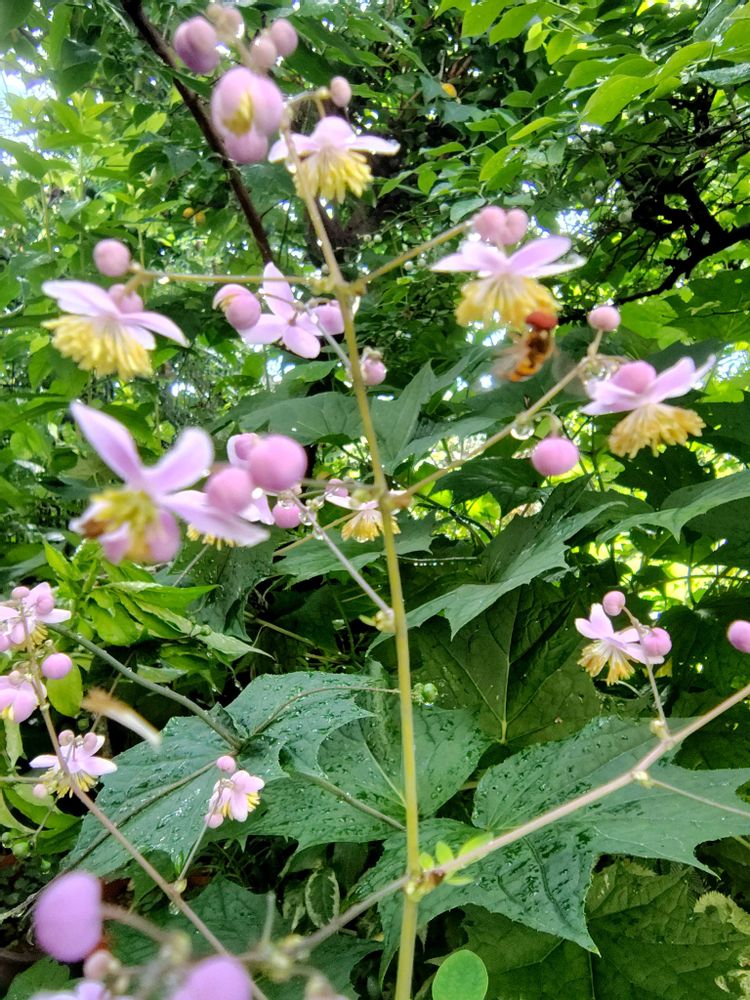 シキンカラマツ〜本当に可愛いデス〜蕾もまん丸だし、花の色もピンクに黄色のシベがギッシリ〜いい感じ〜🩷💛🩷✨