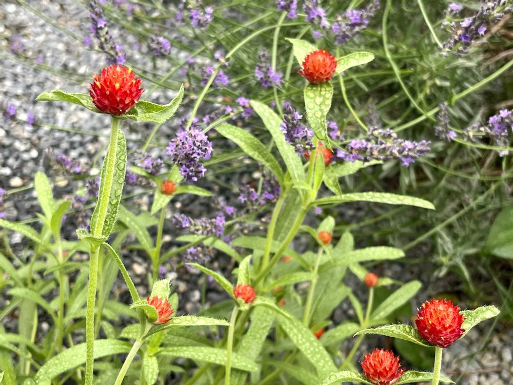 ここは水撒きする時の通り道なので、ラベンダーを守るためセンニチコウはホースに倒されています。でもへっちゃら💪