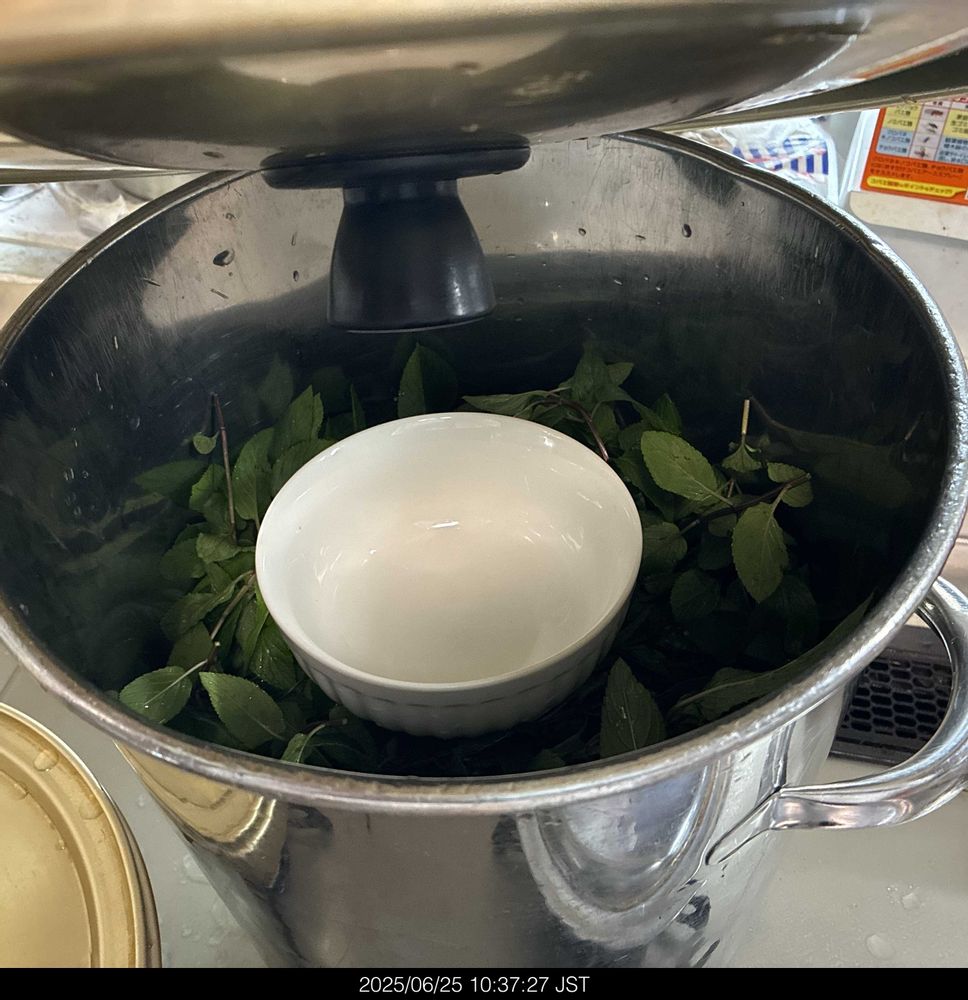 両手に抱えきれないほどのペパーミントを寸胴鍋に詰め込んでみました🌱