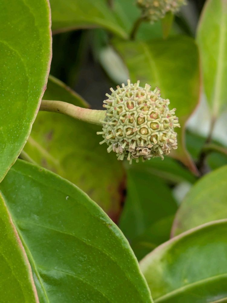ヤマボウシの花が終わり、いよいよ、赤い実へ向けて出発 ヤマボウシの実は沢山の花の集まりがそのまま実になります。