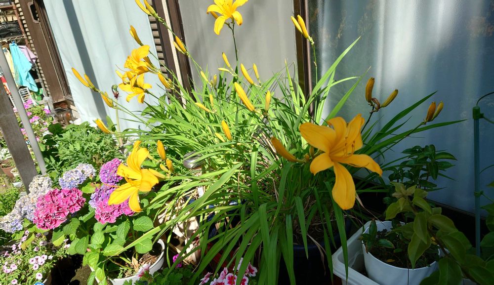 もうそろそろ終わりをむかえるニッコウキスゲまたの名をヘメロカリスまたの名をデイリーリリー。家の植栽の中では古株さんです。母方の祖母から貰ったお花。もう一つ残ってるのは地味な蘭。画像検索するとオリヅルランになるけど違うんだよね。