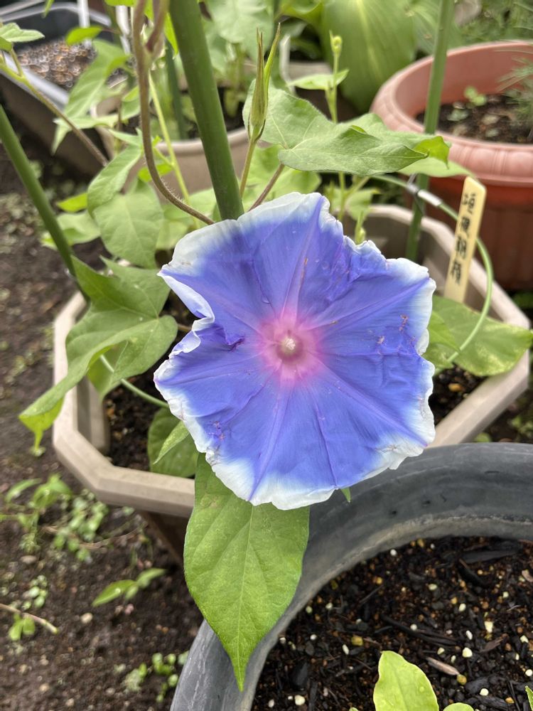 おはようございます。曇り、25.9℃、9:10ムシっと暑い。垣根朝顔2世67日目デカい2番花が咲きました。100均和花エレガントミックス、50日目ジニアの花が咲きました。ホーリーバジル2世79日目ポットの苗に蕾ができました。混合百日草、日々草、50日目だいぶ大きくなりましたが蕾が見れません。😻😍🥰😋☺️😸