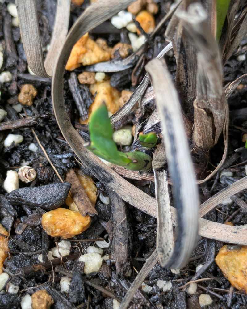 去年長く咲きすぎて弱ってしまったカンガルーポー。でも、新芽らしきものが出てきました。