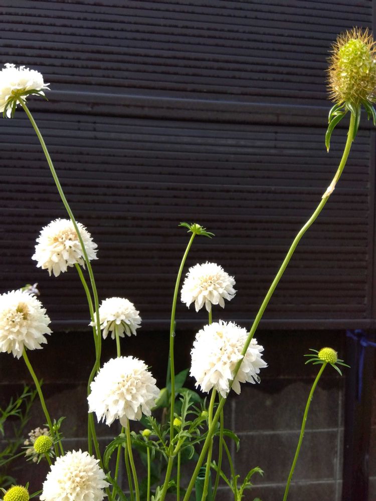 ②サカタのタネさんのミックスフラワーガーデンの種から咲いたスカビオサ モコモコのお花になりました!