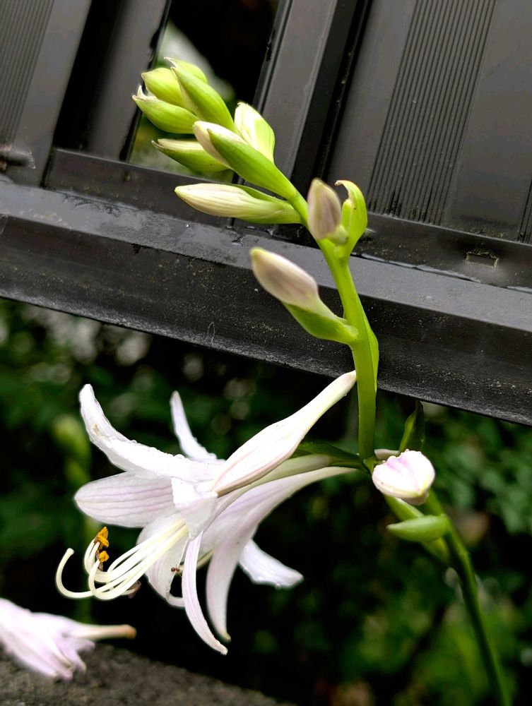 フェンスくぐって開花してんじゃん😳他人ちごて敷地内でこっち向いて咲いてよ〜ぉ💦すでに一輪落ちてるし…