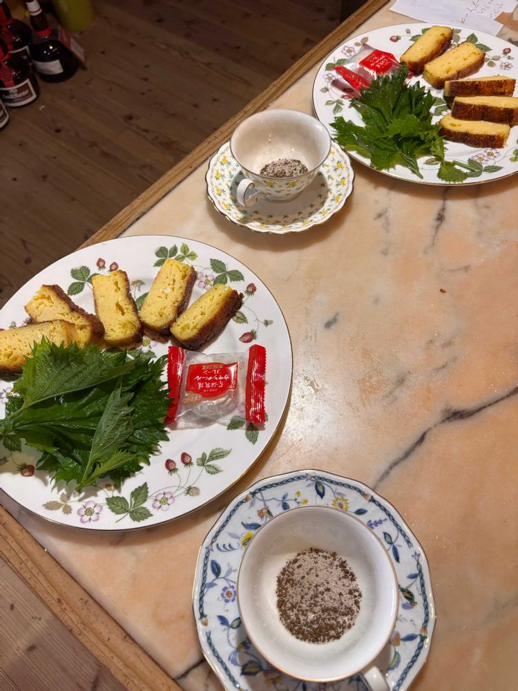 おしゃべりしながら、お茶と言うか遅目の朝ごはんです。