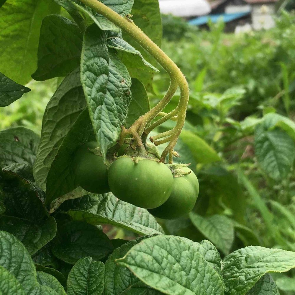 さん、ジャガイモなんですよー😄食べる部分は土の中。実が生るって、自分で育てて初めて知りました♪