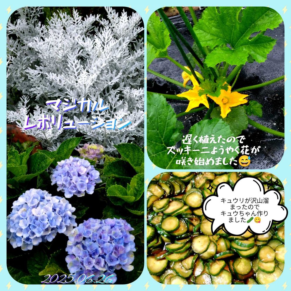 今日は朝から☔雨降り、ちょっと上がった時に急いで写真撮ったり、キュウリ、トマト、ピーマン、インゲン豆収穫😂