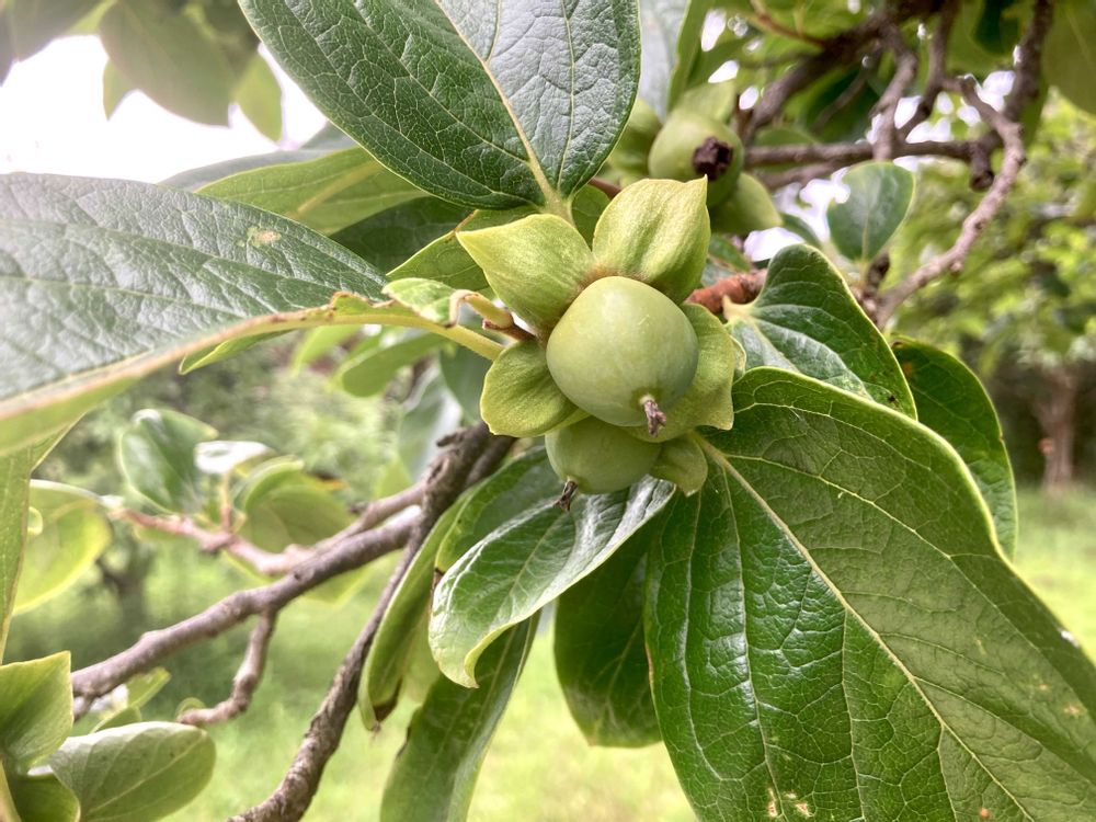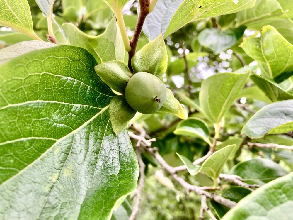 公園の梅林の隅に植えてある「カキ」の木に小さな実がなっていた。