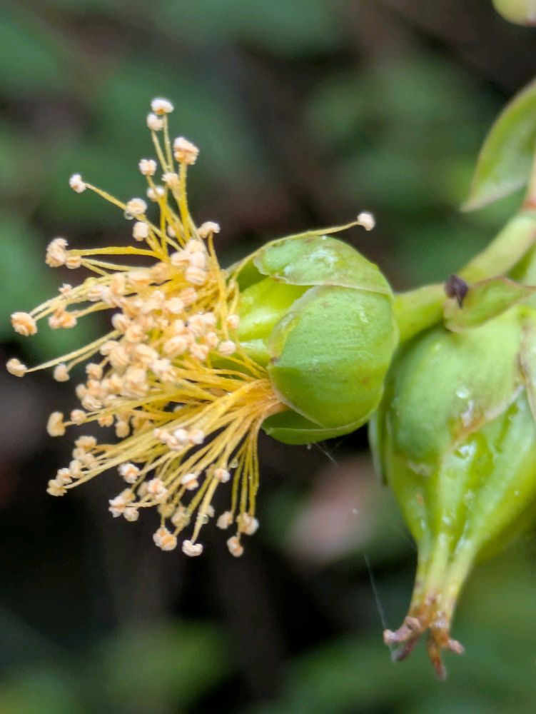 ①この雄しべと②③④梅に似た花の形から金糸梅と呼ばれます