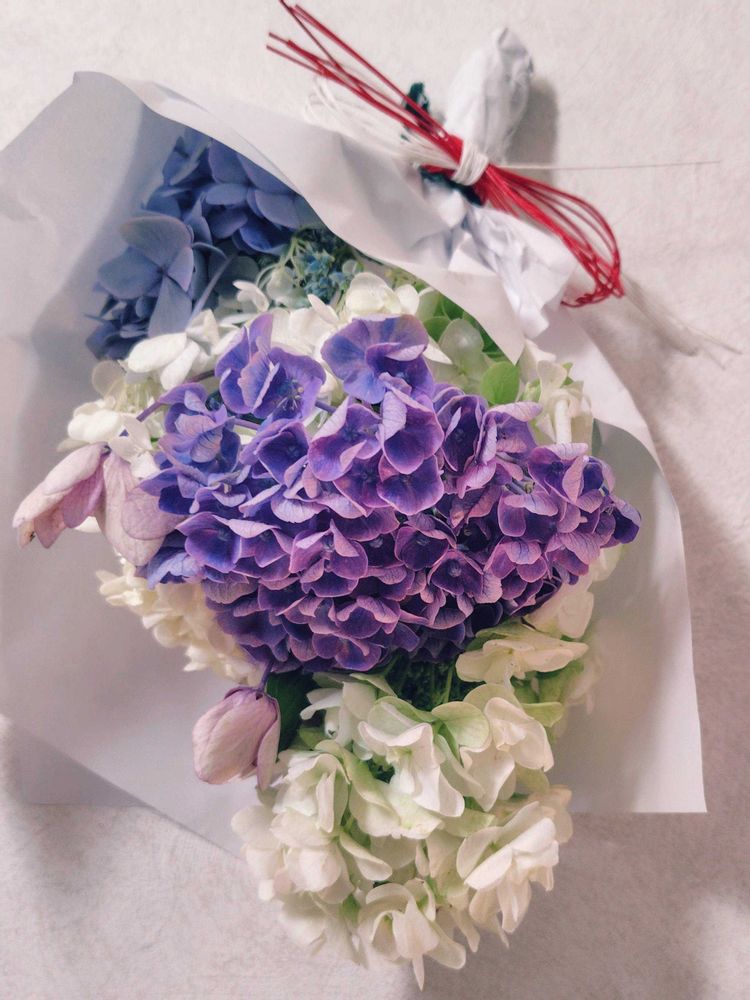 6月26日ですね。アジサイブーケ作りました。末広がりの8本入り。