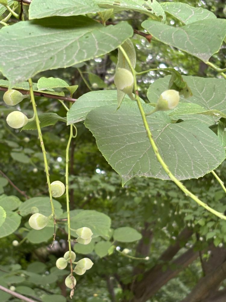 ②こちらはエゴノキです。①のハクウンボクのは、長い柄に複数の実がぶら下がってましたが、エゴノキは、一本の柄に一個の実がついてます