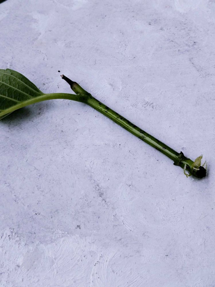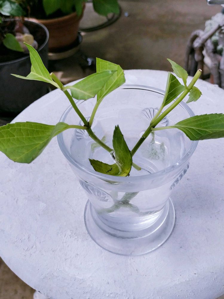 違う紫陽花も挿し水してたら根っこが出てます。花も葉もないのに…。
