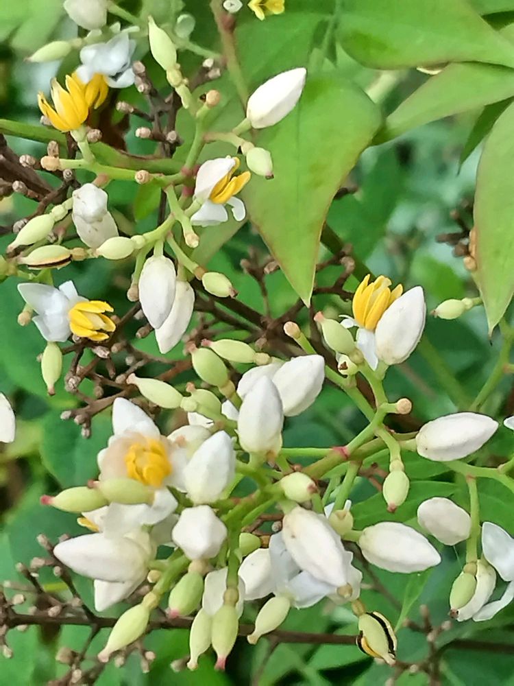 🌿地植えのナンテンの花、ぐんぐん伸びて…