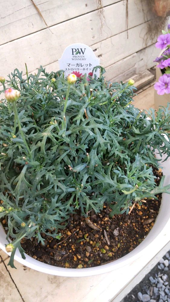 マーガレットストロベリー🍓ホイップも切り戻しから3度目の開花🌸に向かっています。😍🥰💮