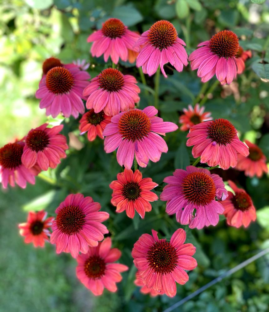 赤のエキナセアが大好きで、いくつかあります。品種改良でいろんな色かたちが出てきていますが、一重でシンプルな原種に近いもの、特に赤が1番強くて丈夫で2番花も咲きやすいらしいですよ。