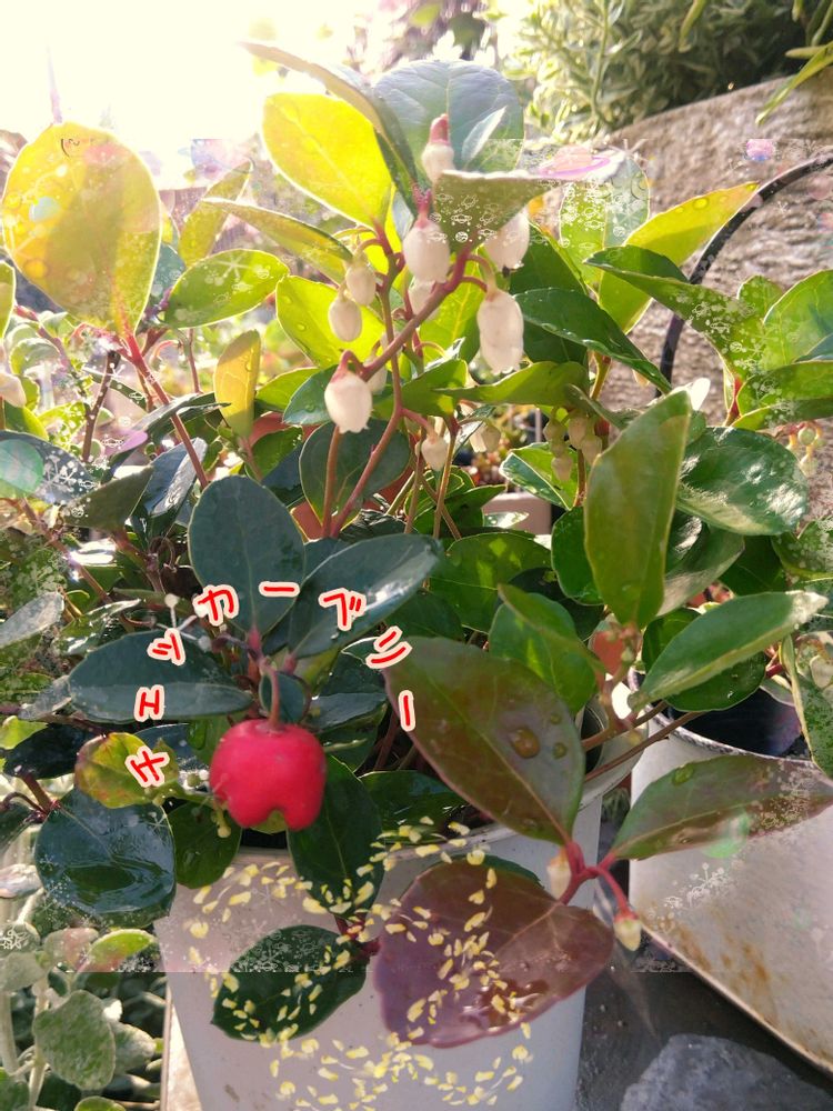 ①チェッカーベリー 🔴実一つ 残って~蕾沢山付けて 咲き始めました(◍•ᴗ•◍)♥
