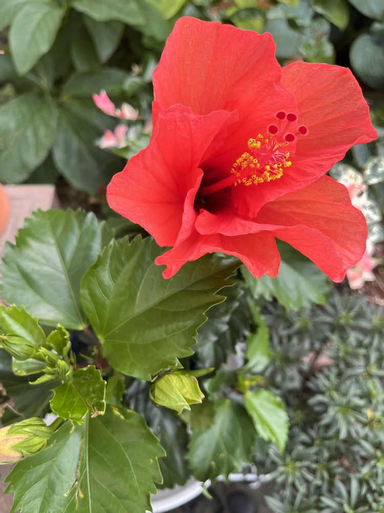 こんばんは🌇ウチのハイビスカス🌺のお名前が分かりました😄「スカーレットアマン」❤️でした。🏷️追加しました😊