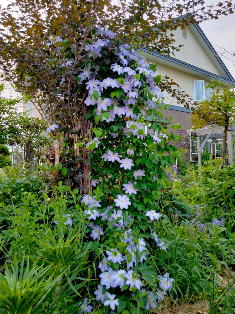 去年までは下に植えてる芍薬等に絡まってて、終わった花切る時一緒に切られたりしてたんですが、居場所を見つけた様です。🌿🌿🌿