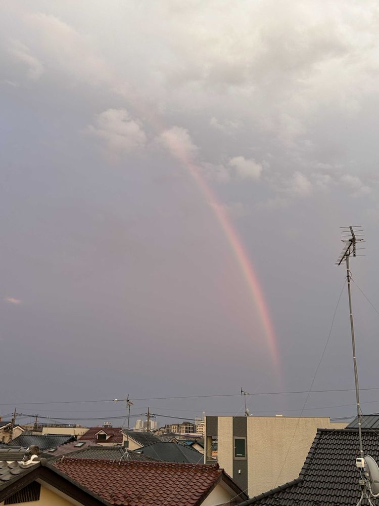 2枚3枚目は今日の夕方に出ていた虹🌈 ちょっと薄くなってたけど見事に端から端まで見えたよ