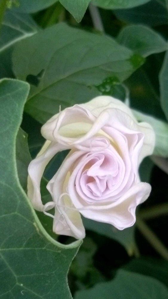 昨年、私の近所に住んでるオバアちゃんが私の自宅庭先にある「グラジオラス」が欲しいと頼まれて球根を分けてあげたお礼に「チョウセンアサガオ」の鉢植をいただきました。