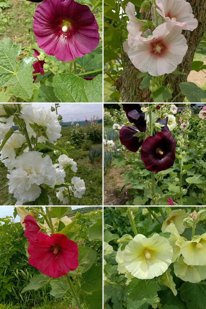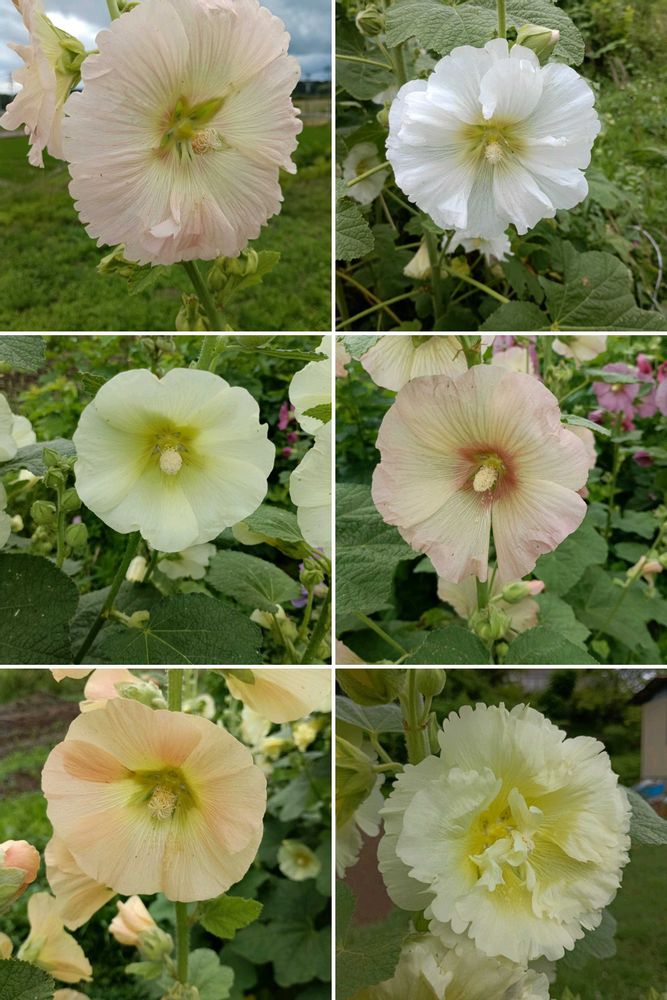 タチアオイの幾つも違う花色を見させて戴いてありがとうございます