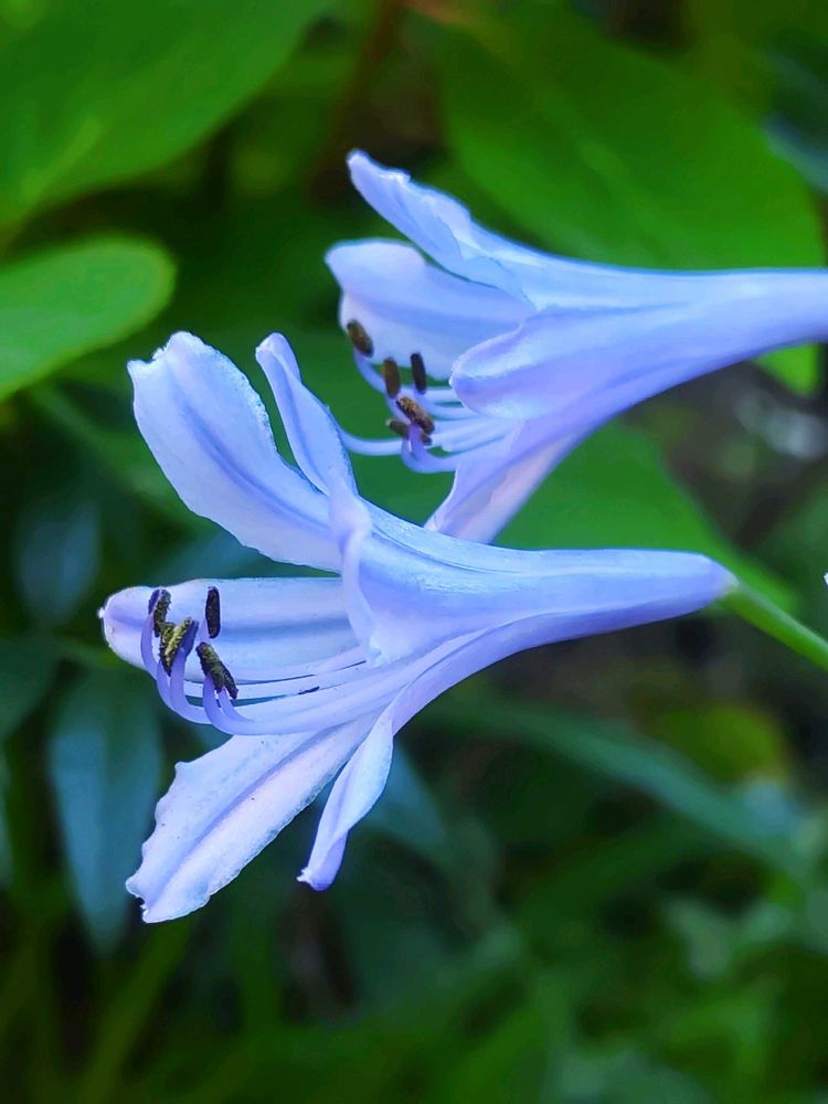 淡い青色の小さなアガパンサスが涼しげに咲いてます
