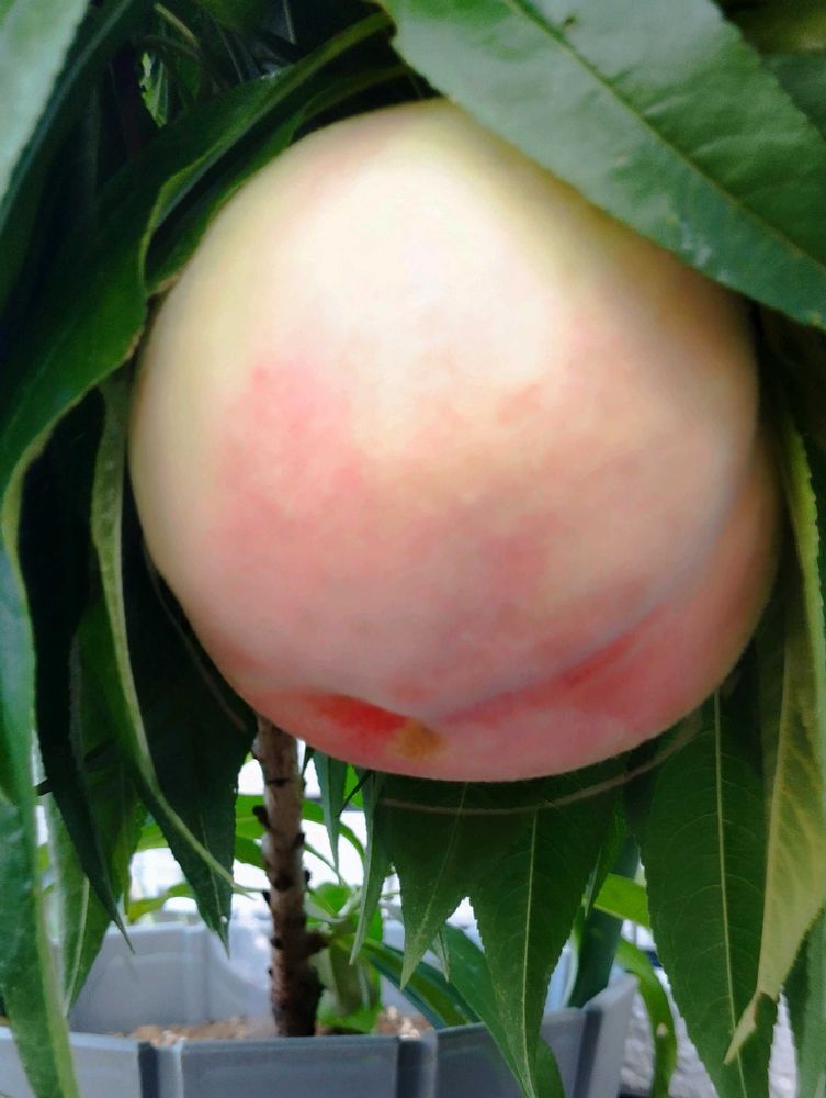 みきドワーフちゃんは小ぶりの桃という話でしたが、結構大きくなりました😊逆に水っぽいのかな?実🍑は多分旦那くんを除いた(お家の滞在時間短いので)家族5人で分け分けすると思います🤭今年🍒は本気て二粒しか実らなかったのですが、ひと粒を2分の1にして家族4人で分け分けしました🤣