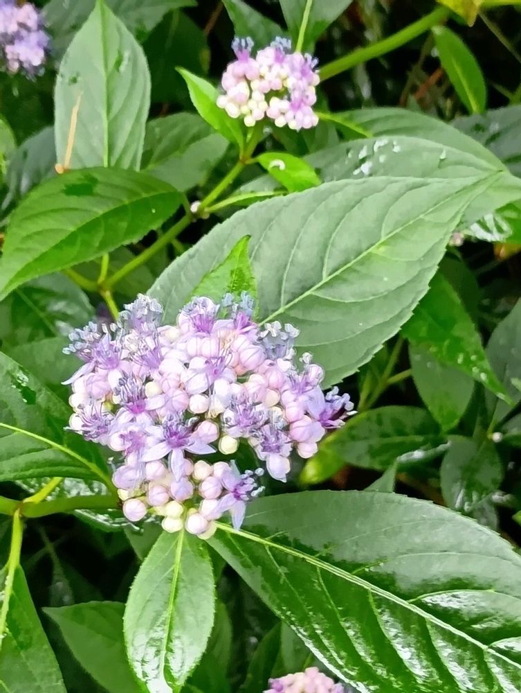 常山アジサイ小さなお花が雨の中はじけてます😉😄🎶