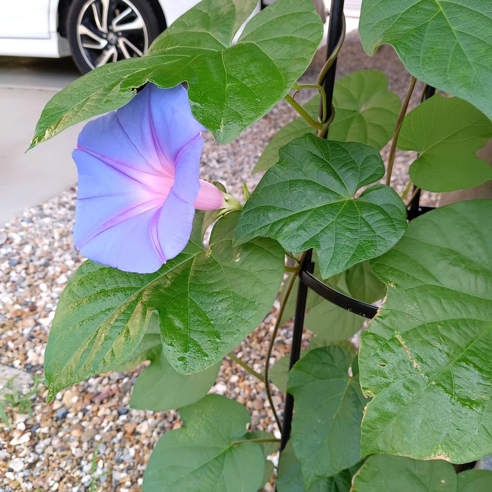 宿根のアサガオ、どんどん伸びて2mくらい。ラベルに巨大植物シリーズと書かれていたので、少し恐怖を感じてます笑