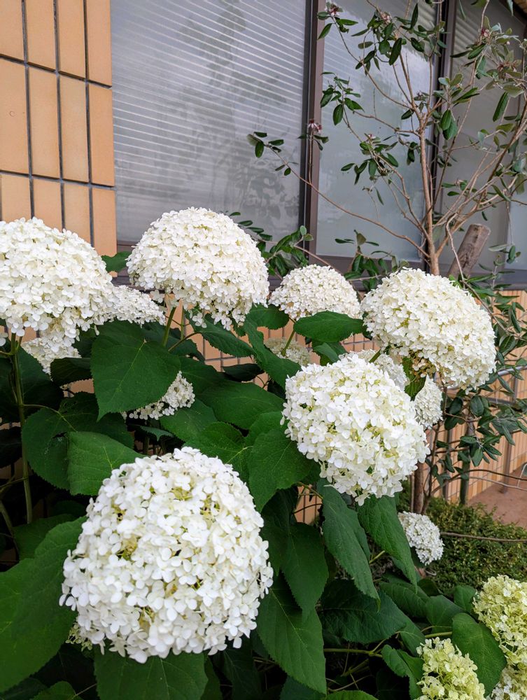 かかりつけ医院の花壇にアナベルが咲いていました🤍✨